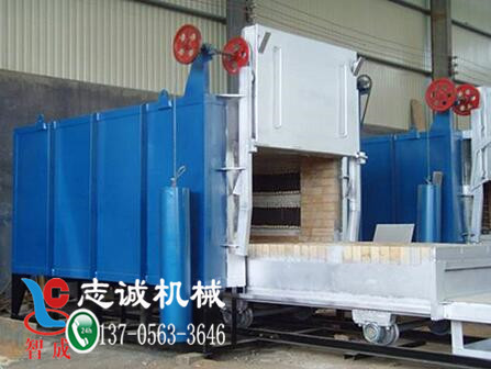 电炉外壳、台车外壳均由型钢及钢板焊接而成,采用耐火纤维保温。电热元件是镍铬合金元件,呈带状或绕螺旋状安装在炉膛两侧的搁丝砖上及台车的炉底搁丝砖上。台车的进出为机械传动,并安装有电器联锁装置,加热元件材质为0Cr25A15或0Cr27AI7Mo2。